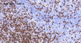 结果:阳性部位棕褐色,细胞核天蓝色,对比鲜明,无背景着色。