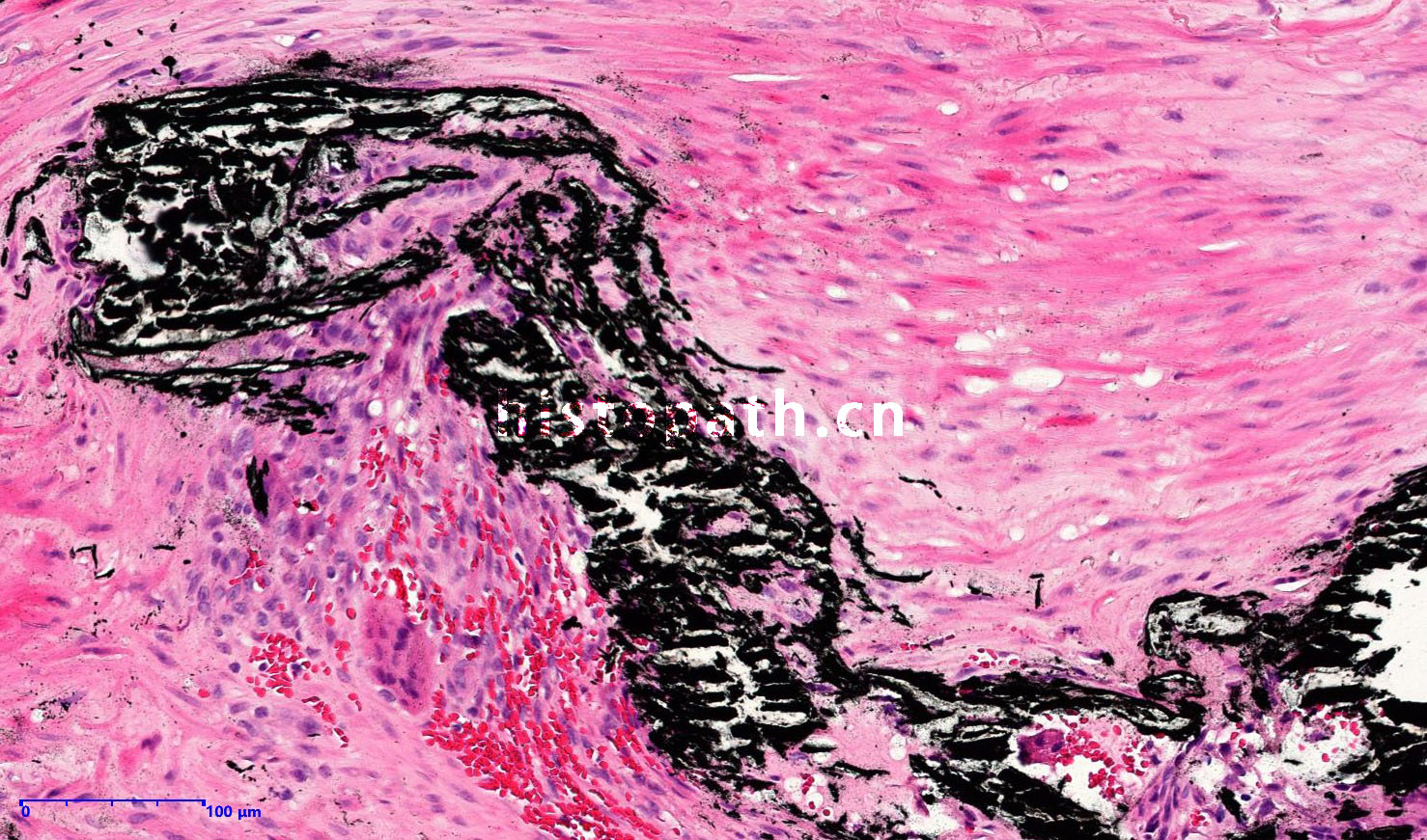 钙在人体内大量存在,构成骨骼作为支持人体的支架,在分泌、运送、肌肉收缩、神经传导等方面也起重要作用。许多染料可以与钙形成螯合物,包括茜素红S、红紫素、核固红等。茜素红S属一种蒽醌类衍生物,是茜素磺酸钠盐,它能与碳酸钙或磷酸钙中的钙盐螯合形成橙红色复合物。钙盐染色常用方法有Von Kossa溶液和茜素红S法,本产品原理在于该法是一种金属置换法,Von Kossa银溶液作用于含有不溶性钙盐的切片时,钙被银所置换,银盐在光的作用下被还原为黑色金属银,适用于大量样本的钙盐组织染色。
